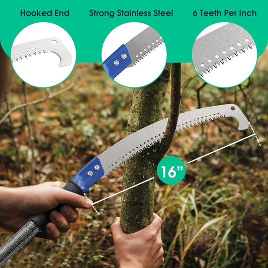 7.5FT Extension Pole Saw for Tree Trimming-Manual Tree Branches Pruner-Long Extendable Splicing Pole Pruning Saw Tree Trimmer with Adjustable Pole