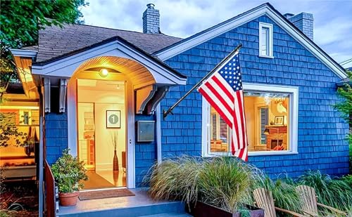 Flag Pole for House with American Flag-Black Flagpoles Residential Kit with 6FT Tangle Free Metal Flag Poles,3x5 Embroidered US Flag and Holder Bracket,Stainless Steel for Outside Porch,Outdoor,Boat
