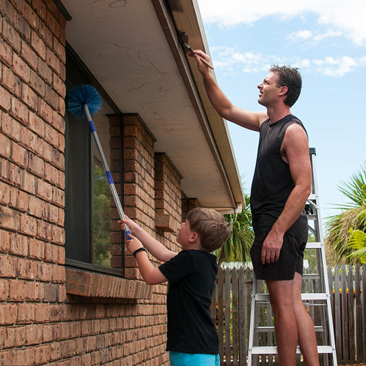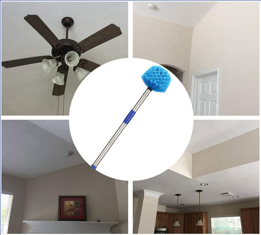 Cobweb Duster with Pole,4-feet Ceiling Fan Duster Medium Stiff Bristles for Indoor Outdoor Garage