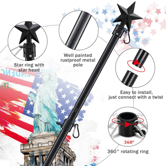 Black Flag Pole for House - 5ft Tangle Free House Flag Pole for 3x5 Flags,Rustproof Outdoor Flag Poles for Outside House Porch Garage Truck Boat Decor (Flagpole without Bracket)