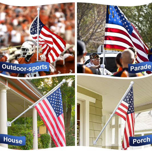 Flag Pole Kit with 3x5 American Flag - Includes 5ft Heavy Duty Tangle Free Flagpole,Embroidered 3X5 US Flag,Aluminum Mount Holder Bracket,Metal Flagpoles for Outside House,Porch,Outdoor - White